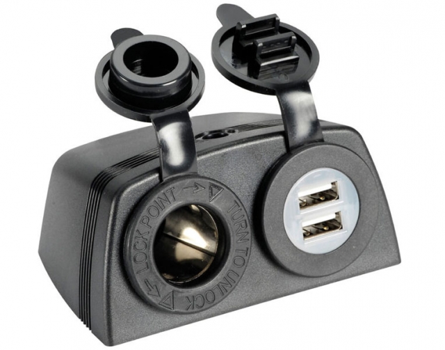 Zásuvka pro zapalovač + dvojitý USB s pouzdrem