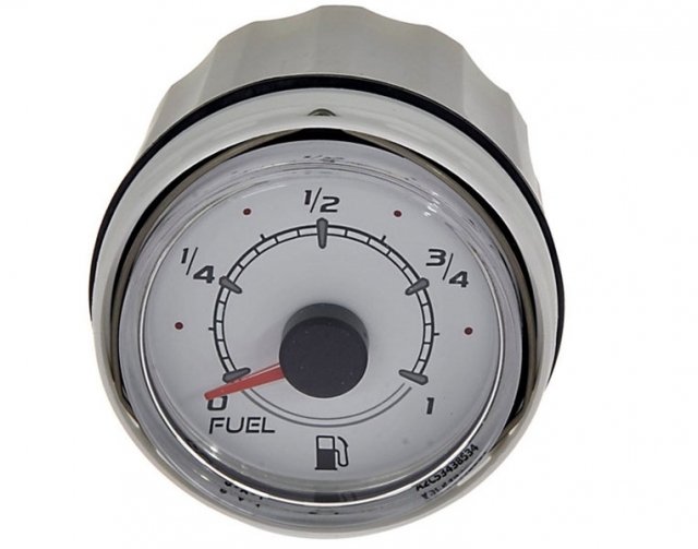 Ukazatel hladiny paliva, bílý ciferník, skleněná čočka. Pasuje na standardní otvor o průměru 52 mm (2 1/8"). Použití tohoto ukazatele závisí na konkrétním modelu motoru a dostupných senzorech. KRÁJECÍ KRÁTEK SE PRODÁVÁ SAMOSTATNĚ. Funguje se všemi motory kompatibilními se SmartCraft.