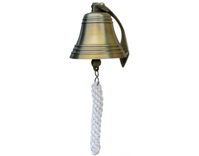 Popis: starožitná mosadz, so závesom a lanom, Ø: 12,5 cm