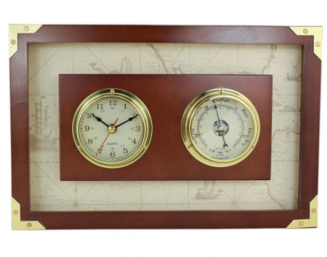 Set určen pro montáž na stěnu. Tato meteostanice obsahuje hodiny, barometr, vlhkoměr a teploměr. Meteostanice je ve tvaru lodního okna o rozměru 31x20,5 cm.
