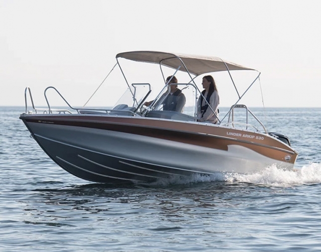 Arkip 530 je navržen tak, aby poskytoval bezpečnost i pohodlí. Má délku 576 cm, šířku 214 cm a vysoký volný bok, díky čemuž je to velký, tichý motorový člun s prostorem až pro 6 osob a prostornými sedadly na přídi i zádi.
