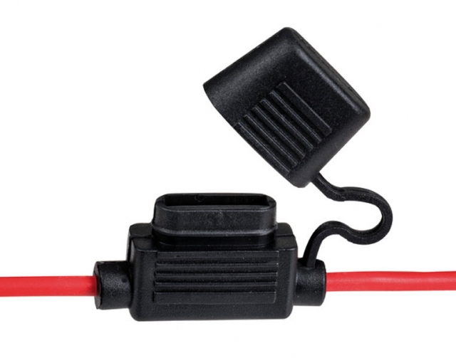 Hochwertiger thermoplastischer Gummi für Standard-Lamellensicherungen. Komplett mit 2 Kabeln à 150 mm, Querschnitt 2 mm². Max. 35 A