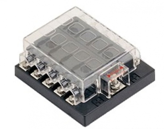 Flachsicherungshalterkasten mit 10 Steckplätzen