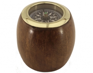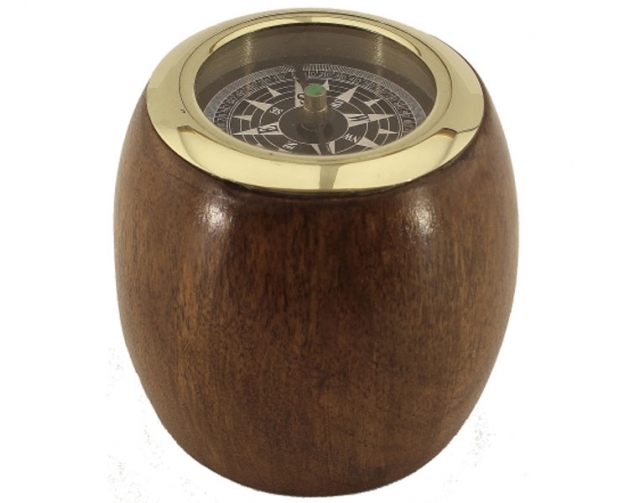 Beschreibung: Messing in Akazienholz, Ø: 7 cm, H: 6,5 cm