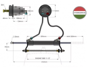 Hydraulic steering system for outboard motors with a maximum power of 90 hp. Thrust: 236 kg Maximum speed: 40 knots 3-year warranty Package includes: