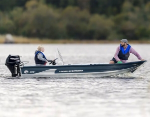 The Linder Sportsman 400 is designed for up to 20 HP. It is suitable for fishing and water skiing on lakes, rivers and coastal waters. It is equipped with storage space in the rear and under the middle seats. The steering gear, including a place for a battery, is available as an option. The Sportsman 400 is an unsinkable boat! It floats even if there are 4 people on board and the boat is full of water and has a 3-year warranty.