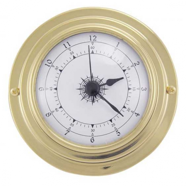 Mosadzné nástenné hodiny s priemerom 9,8 cm.