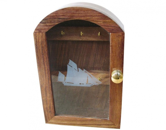Skrinka na kľúče, sklo s plachetnicou, drevo 25x16x6cm
