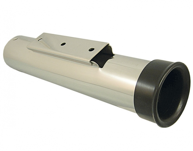 Nerezový držiak na udicu vystužený nylonom na udice do priemeru 38 mm. Jednoduchá montáž a demontáž.