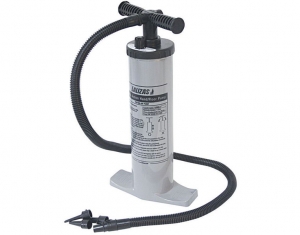 Ručná/podlahová pumpa s dvojitým účinkom „Lalizas navrhla praktickú a vysoko účinnú ručnú/podlahovú pumpu s dvojitým účinkom – ideálnu na nafukovanie alebo vyfukovanie člnov, duší na lyže, nafukovacích matracov a mnohých ďalších nafukovacích produktov. Na nafukovanie alebo vyfukovanie jednoducho pripevnite vzduchovú hadičku k príslušnému pripojeniu („Nafukovanie“ alebo „Vyfukovanie“) a pumpujte stálymi ťahmi hore a dole. Pumpa je tiež vybavená nastaviteľným tlakovým ventilom, ktorý umožňuje jednoduché nafukovanie buď len pri ťahu hore aj dole (2,1 l na ťah), alebo rýchlejšie pri ťahu hore aj dole (4,2 l na ťah). Dvojčinná pumpa Lalizas sa dodáva s flexibilnou vzduchovou hadičkou, 4 veľkosťami adaptérov a sadou 6 adaptérov (predávajú sa aj samostatne). Veľké pohodlné rukoväte poskytujú lepší úchop a nožičky zaisťujú stabilitu počas pumpovania. Ľahko udržiavateľná ručná/podlahová pumpa Lalizas s dvojitým účinkom je vyrobená z pevného, nekorodujúceho, ľahkého, sivého plastu. – Ideálne na použitie na veľkých nafukovacích predmetoch – Nepretržitý prúd – pumpuje vzduch pri pohybe nahor aj nadol - Jednoduché zasunutie hadice k čerpadlu na nafúknutie alebo vyfúknutie - Ľahko sa rozoberá pri kontrole alebo údržbe